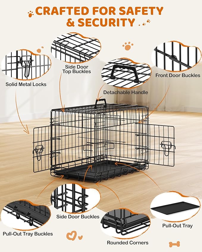 - Robust & Secure: Made from powder-coated metal wires with rounded edges, this black dog crate ensures durability and safety. Its waterproof, pull-out tray simplifies maintenance, and the double-lock design of this double door dog crate furniture keeps your clever escape artist safely inside
