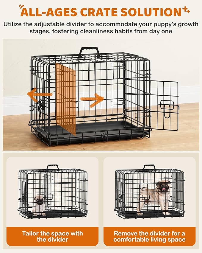 - Versatile Dog Crate for All Stages: From playful puppies to adult dogs, this dog crate with divider adapts to every stage. Whether teaching your puppy good potty habits or helping them create a cozy, designated sleeping area, this adjustable divider helps tailor the space to ensure comfort and convenience
