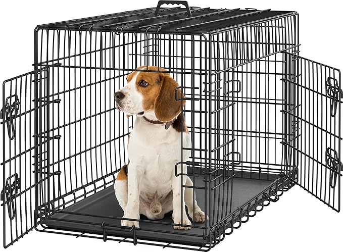 Yaheetech 36 inch Double Door Dog Crate w/Divider for Puppy, Collapsible Metal Dog Kennel with Removable Tray, Portable Travel Cage, Black