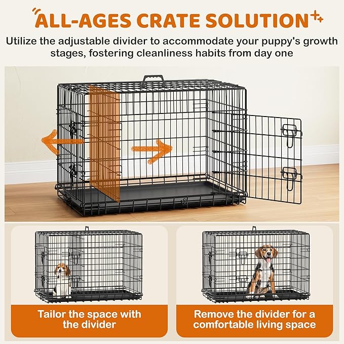 - Versatile Dog Crate for All Stages: From playful puppies to adult dogs, this dog crate with divider adapts to every stage. Whether teaching your puppy good potty habits or helping them create a cozy, designated sleeping area, this adjustable divider helps tailor the space to ensure comfort and convenience