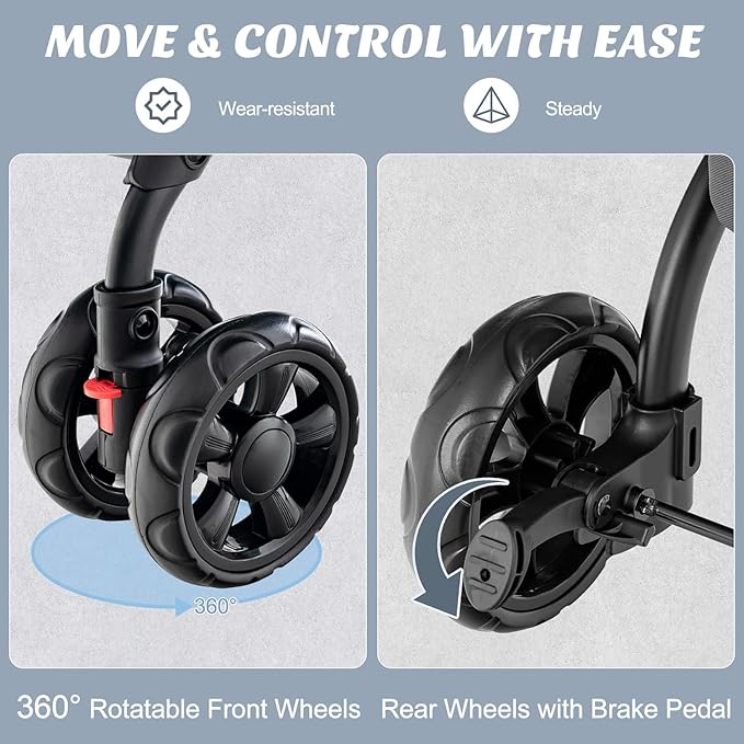 - 【Effortless Mobility】Move seamlessly across all terrains with the double dog stroller's 360° universal wheels and padded handle. Lockable wheels provide stability and control, while all wheels are shock-absorbing, low-noise, and wear-resistant.
