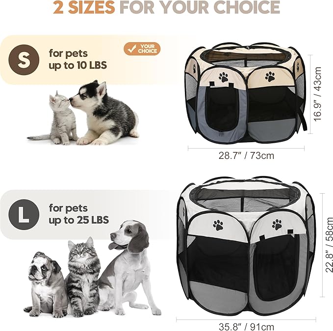 - Perfect Size: Our playpen is available in two sizes, S: 29*29*17, L:36*36*23, which is suitable for most pets, making it easy to keep them safe and secure both indoors and outdoors.