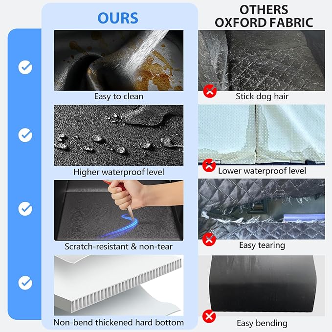 - 【UPGRADED STURDY FAUX LEATHER】ROUWINNE backseat extender for dogs is made of upgraded imitation leather, which is softer and more wear-resistant and scratch-resistant than Oxford cloth. No need to worry about being scratched by pets. At the same time it is better in waterproof, cleaning also more convenient and quick, do not have to worry about dirt sticking in the cover, it is easier to clean.