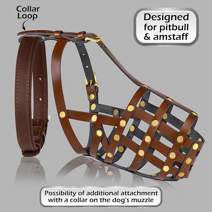 - Materials: Crafted from premium genuine leather with stainless-steel rivets, our cage muzzle ensures safety and durability for large dogs. The adjustable leather straps provide a secure, comfortable fit, preventing slipping during use.