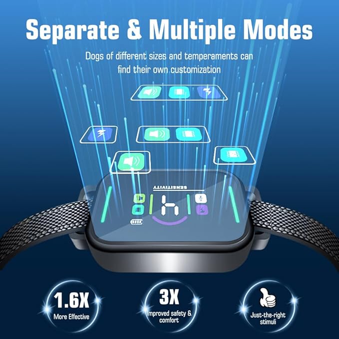 - Intelligent Anti-bark Trigger: features a more sensitive sensor that activates only when your dog barking, effective filters other dogs barking and noise; And the over-shock protection ensures a well-behaved dog without the risk of over-stimulation