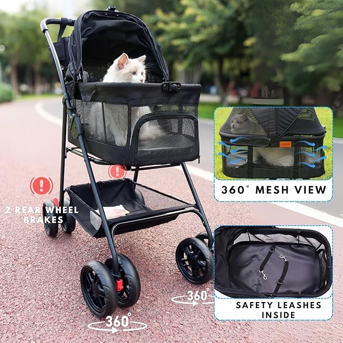 - SECURE AND COMFORTABLE - Designed with safety in mind, the two leash attachments inside our cat strollers for 2 cats keep your pet secure while the cushioned interiors provide comfort. This pet stroller for cats blends the best of both worlds, ensuring a happy pet.