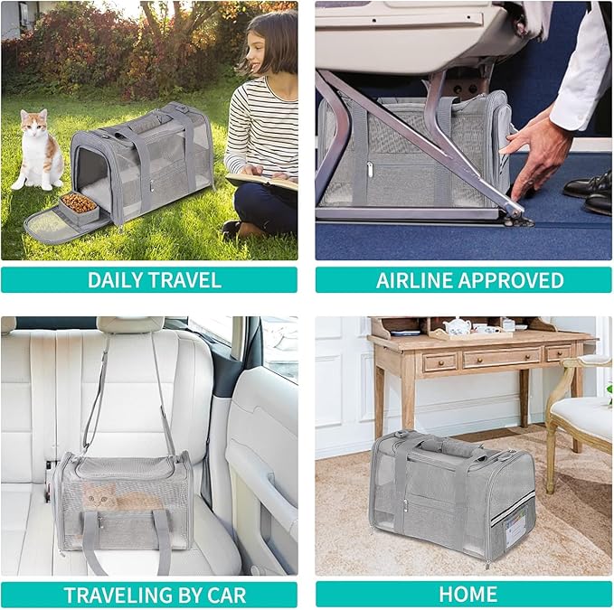 - [Escape-Proof Security]: Featuring a secure, zippered entry that fully closes, our cat carrier keeps your curious kitty safe and secure inside. The mesh ventilation panels allow for ample airflow without compromising on escape-proofing, giving you peace of mind during every trip.