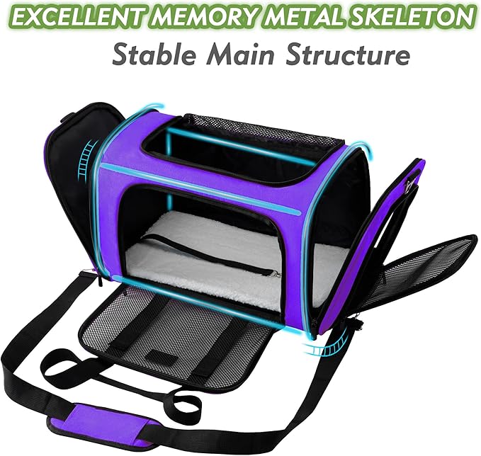 Soundy Dog Carrier Cat Carriers Airline Approved Pet Carrier for Small Medium Dogs Cats Under 15Lbs Puppies Collapsible Soft Sided TSA Travel Puppy Carrier Bag (Medium, Purple)