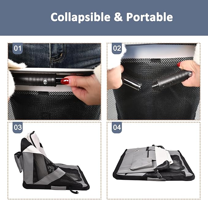 - Collapsible Dog Kennel: Three mesh entrances door (Top, front and side) for convenience sunlight and breathability; Ample Ventilation for Use in All Season. Easy carry with handle or strap. Adjustable strap included.