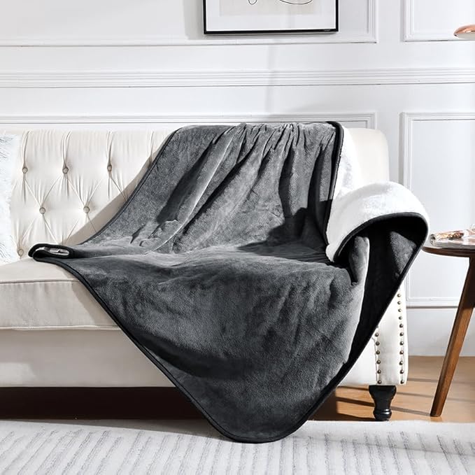 Waterproof Blanket for Bed Couch Sofa, Soft Liquid Pee Proof Pet Blanket for Dog Puppy Cat, Reversible Sherpa Fleece Blanket for Furniture Protector (Dark Grey, 50x60 inches)