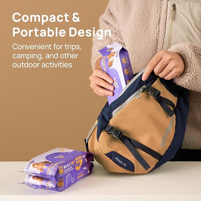 - On-the-Go Bath Wipes: Perfect for water-averse pets, pets in special conditions, senior pets, and busy pet parents. Each dog cleaning wipes is individually packaged, making it convenient for travel, hot weather, or situations where bathing is not possible