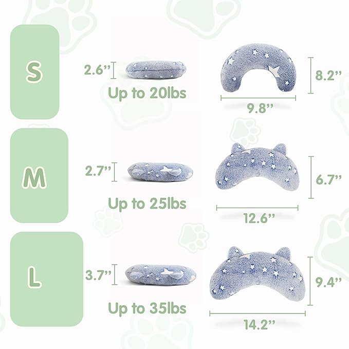 Dog Pillows for Medium Dogs, Glow in The Dark Soft Dog Neck Pillow, U-Shaped Pillow for Cat and Dog, Machine Washable Dog Toy & Dog Birthday Gift (Glow Blue, M)