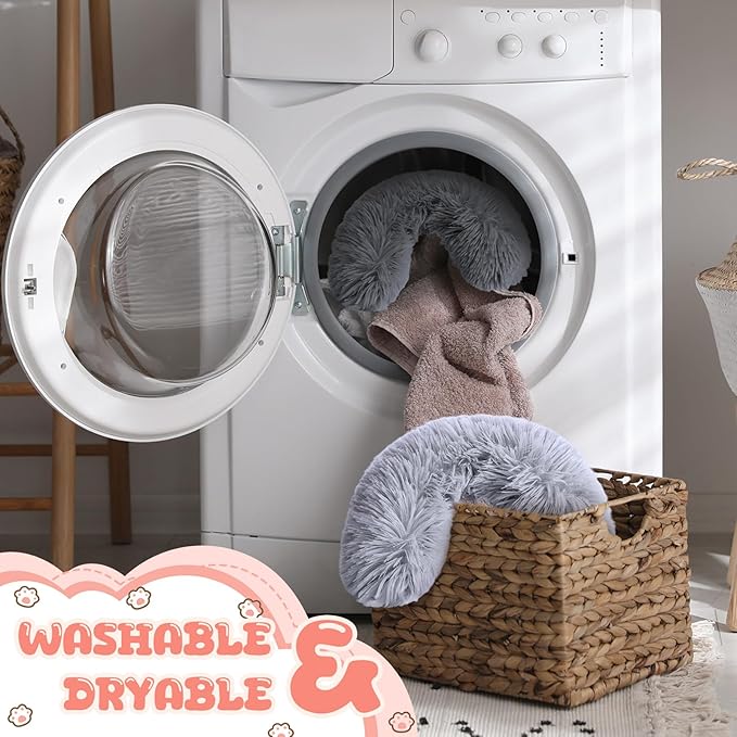Sweetude 2 Pcs Cat Pillow for Indoor Cats and Dogs Ultra Soft Fluffy Pet Calming Toy Half Donut Cuddler Pillow U Shaped Pet Neck Pillow Calming Puppy Pillow Joint Relief Cervical Protection