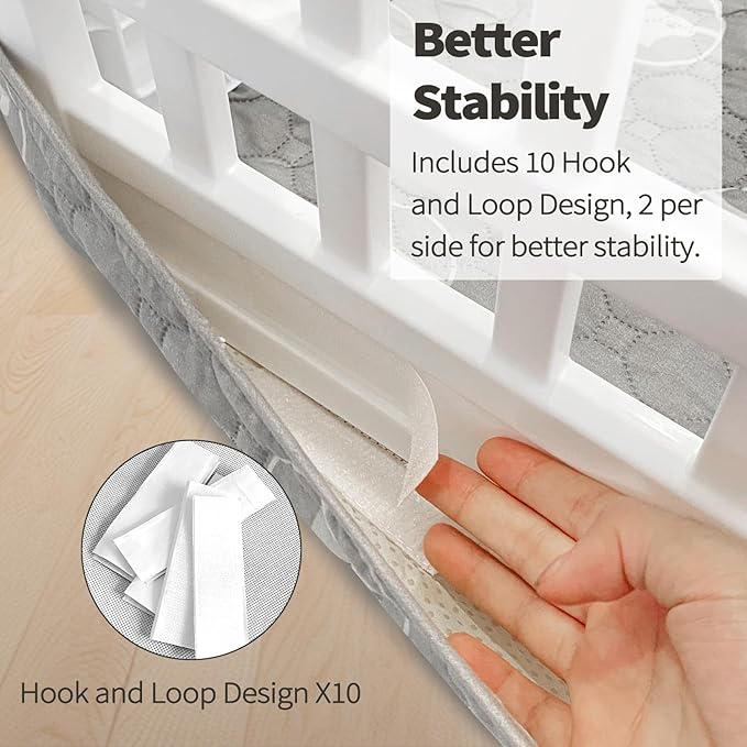 - Hoop-and-Loop Design: Each side of the 36-inch bottom mat features two stitched velcro strips for secure attachment. We also provide an extra set of 5 velcro pairs for added stability. This design fits most 36-inch plastic playpens available on the market.