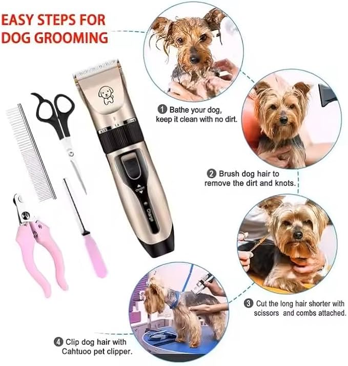 - Versatile Pet Grooming Kit: Includes 6 guide combs, scissors, comb, and rechargeable cordless clipper for a complete grooming solution.