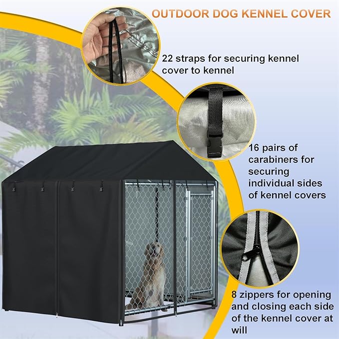 - 【Unique Design】We use 8 zippers and 16 pairs of buckles on the dog house cover, each side can be opened and closed freely, and you can change the direction at will Ventilation Lighting Shading