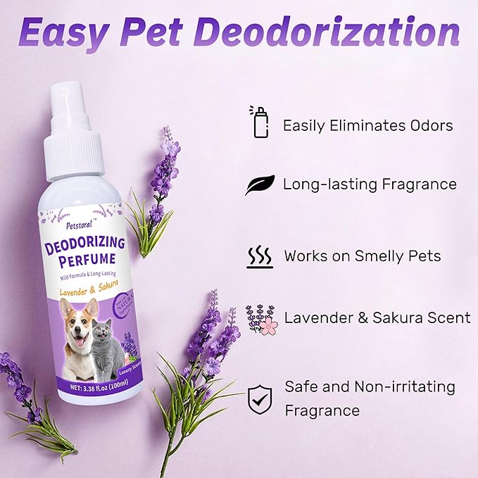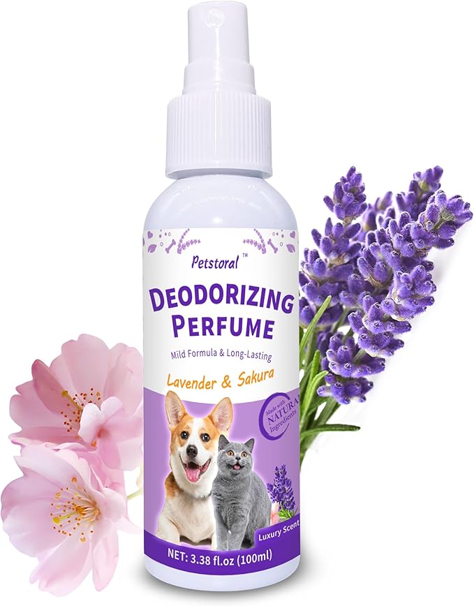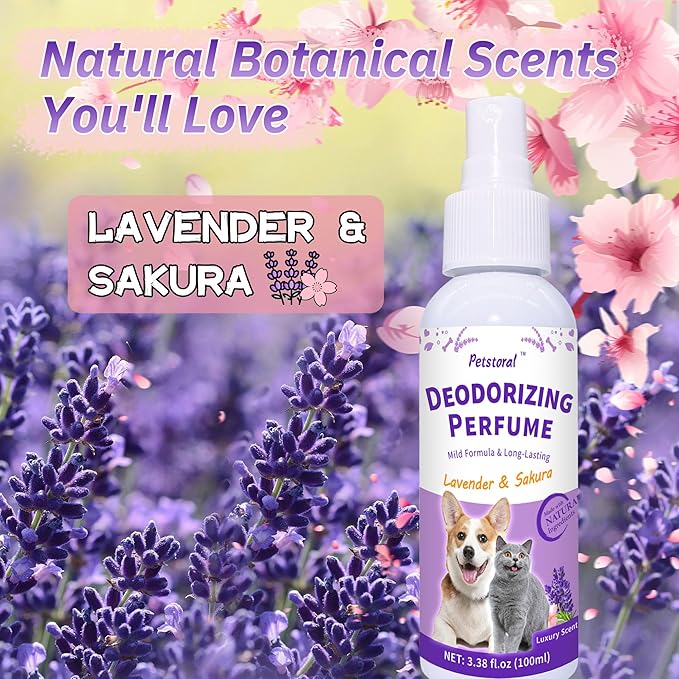Deodorizing Perfume Spray for Pets, luxury Scent, Long-Lasting Fragrance, 3.38 Fl Oz. (Lavender & Sakaru)