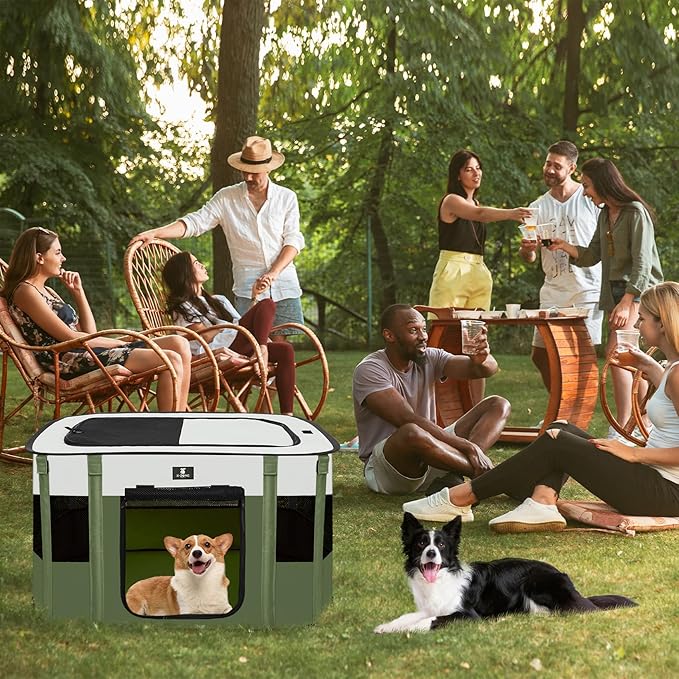 - 【Spacious & Comfort】Dog cage consists of 4 mesh side panels and a half mesh top, well ventilated; The playpen tent promotes comfort and security, providing dogs and cats a safe enclosed space for lounge and play. The pet playpen is also a ideal present as Christmas gifts for dog cat lovers