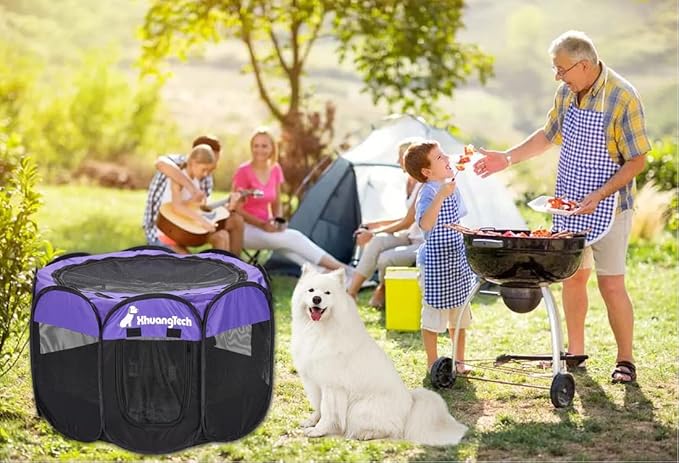 Foldable Pet Dog Playpen, Pop Up Portable Cat Playpen, Indoor/Outdoor for Kitten Puppy Play Pen, Cats Crate Tent with Carrying Bag, 600D Oxford (Purple + Black, Medium (31.5"x31.5"x23"), 8)