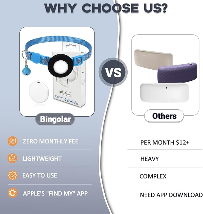 - Seamless Integration with Apple Find My App:This item finder has been officially certified by Apple.Simple one-click setup instantly connects Dog Cat Tracker finder to Find My Apps on your Apple device. And track your furry friend's Location in real time on your phone.(*Note:This cat GPS tracker collar only works for apple ios products)
