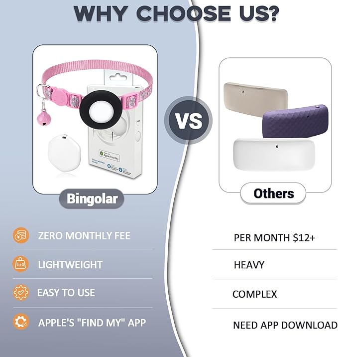 - Seamless Integration with Apple Find My App:This item finder has been officially certified by Apple.Simple one-click setup instantly connects Dog Cat Tracker finder to Find My Apps on your Apple device. And track your furry friend's Location in real time on your phone.(*Note:This cat GPS tracker collar only works for apple ios products)