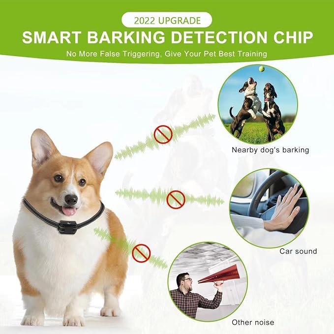 - 【Advanced Smart Chip & Anti-False Trigger Technology】 The dog barking collar equipped with an upgraded smart bark recognition chip and sensor, this no bark collars for dogs respond instantly and accurately to your dog's barking. The anti bark collars for dogs prevents false triggers from other dogs or background noise, provides safe and efficient training in any environment. Only barking twice or more in 10 seconds will trigger the spray.