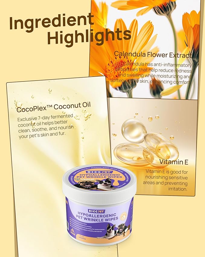 HICC PET Wrinkle Wipes for Dogs- 100 Count Hypoallergenic Wrinkle Wipes French Bulldog, Cleans Deodorizing, Anti-Itch Tear Stain Remover, Vet-Recommended Dog Face Wipes Great for Pug, English Bulldog