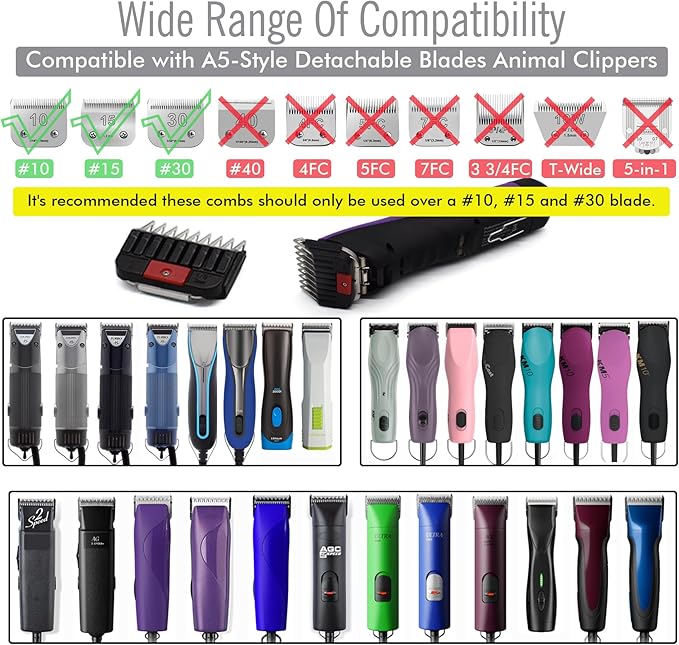 - Compatible with Oster A6, Golden A5, Turbo A5, Andis AG, BG, AGC, BDC, DBLC, FHC, MBG, SMC, SMX, BGR and KM2, KM5, KM10, KM Cordless, Thick Coat Clipper, SS Pro, Power Grip, etc.