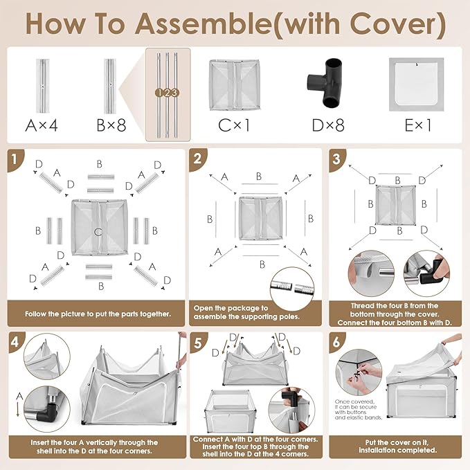 - EASY TO CARE:The dog pen can be spot cleaned, and the detachable outer cover is fully machine-washable for effortless cleaning. But we recommend using this dog playpen with washable mats or pee pads for added protection against stubborn stains caused by bodily fluids. This design ensures hygienic conditions and long-lasting use, making it a practical choice for pet owners.