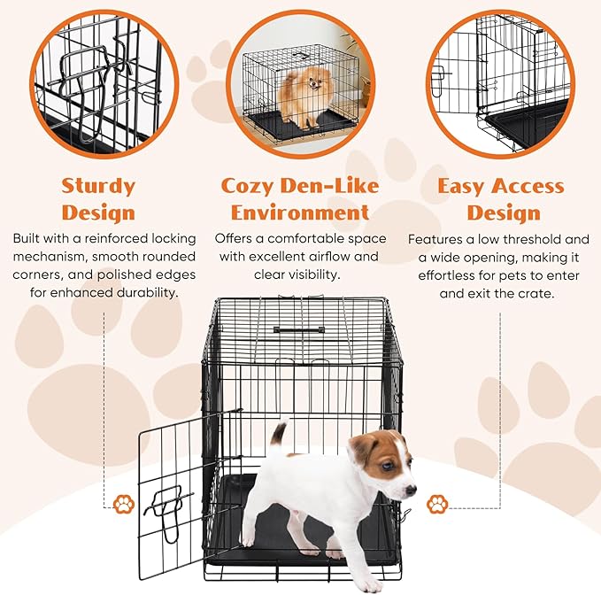 Sweetcrispy 24-Inch Single-Door Dog Crate–Durable Metal Pet Kennel with Secure Lock, Foldable Design, Removable Tray for Easy Cleaning, Portable Puppy Cage for Small Dogs, Ideal for Training & Travel