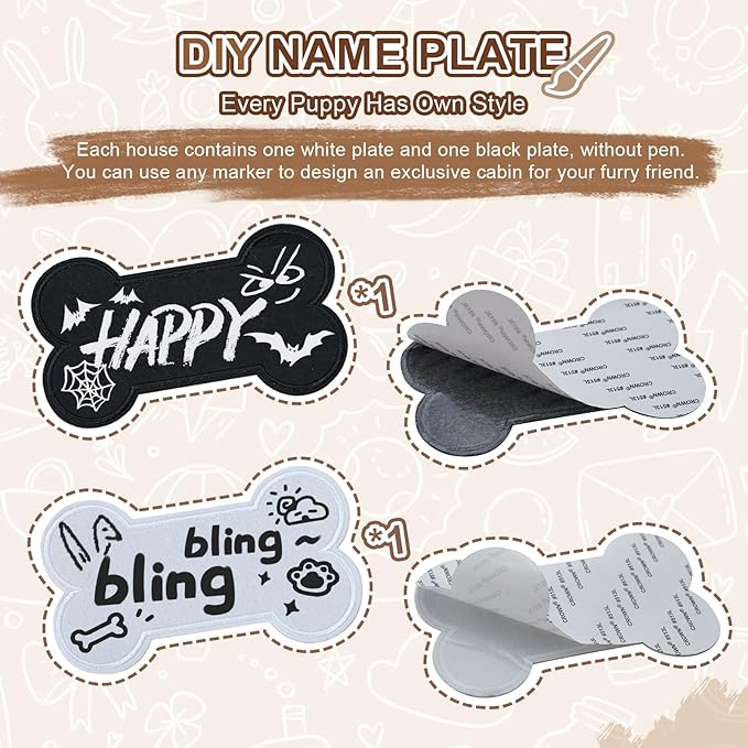 - DIY Name Plate: Every puppy has own style, you can design an exclusive cabin for your furry friend. Each house have one black and one white plate (no pen), any marker can draw