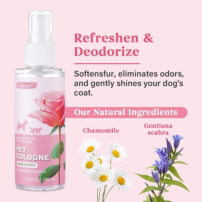 - Multi-functional:The dog perfume that conditions and deodorizes for a quick refresh without the fuss,also functions as a moisturizing and detangling conditioner, leaving your pet's coat shiny and fresh