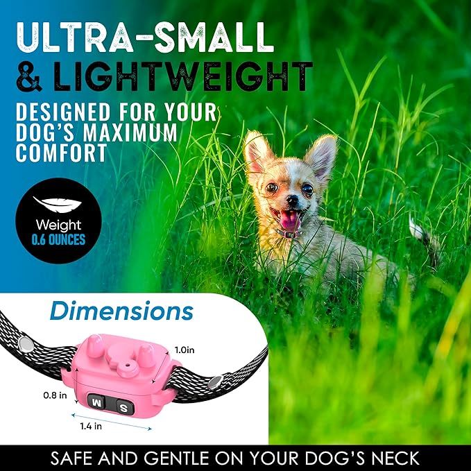 - Lightweight Design for Maximum Comfort: With a feather-light design that weighs only 0.6 oz, our dog bark collar ensures comfort and all-day wearability, ideally suited for small and medium-sized dogs