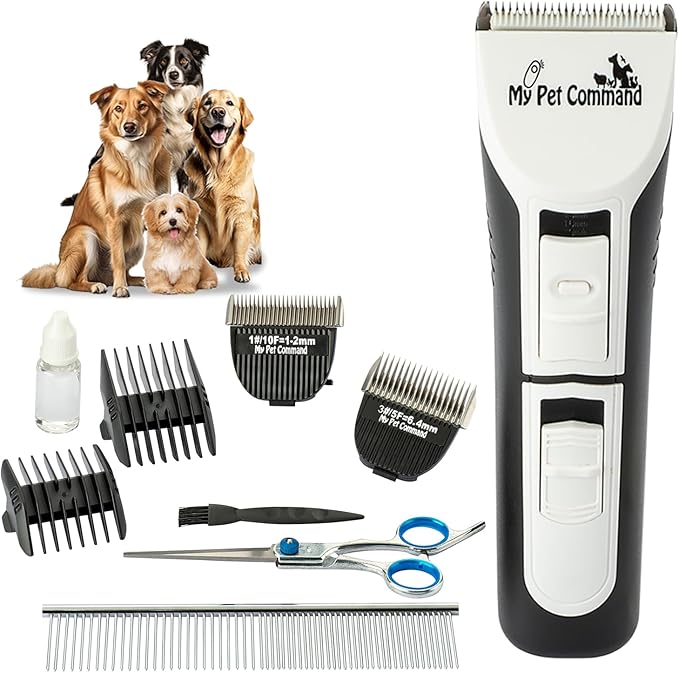My Pet Command Professional Dog Clippers for Grooming, Cordless Rechargeable Pet Trimmers, Heavy Duty Dog Clippers for Thick Coats, Low Noise, Light Weight
