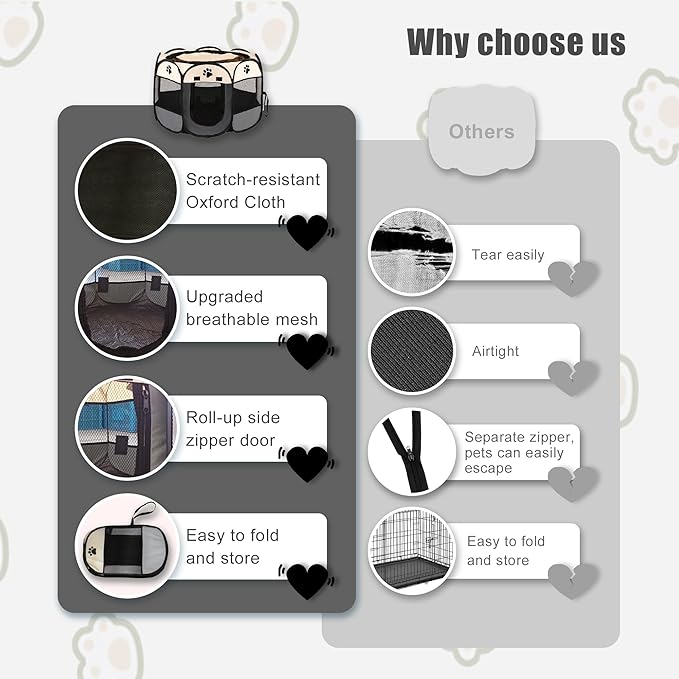 - NO ASSEMBLY, EASY TO USE: The portable pet playpen unfolds in just a few seconds with no assembly, convenient and easy to use, the zippered door allows pets to enter and exit easily. It can also be easily folded and put into a storage bag when the kitten playpen is not in use, ready to meet your needs.