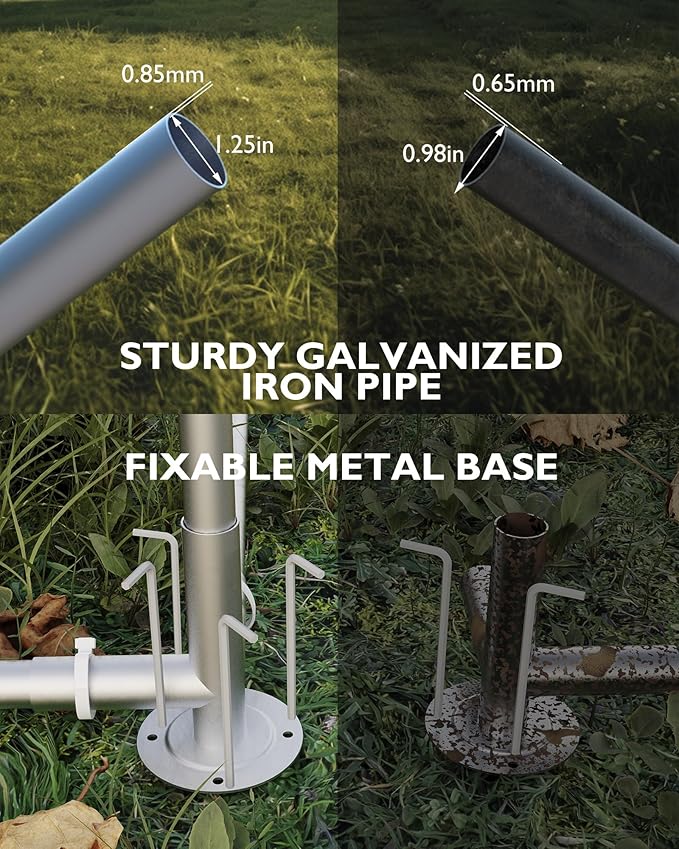 - [ROBUST & SECURE CONSTRUCTION] - The Hipicute outdoor dog kennel is made from premium galvanized iron pipes, with walls measuring 0.85mm thick and pipes that have a diameter of 1.25 inches. For extra stability, it includes four pin pegs and features a reinforced lockable door, an independent feeding port, and durable wire mesh for added security