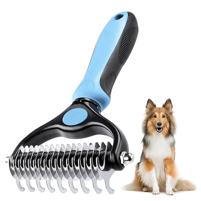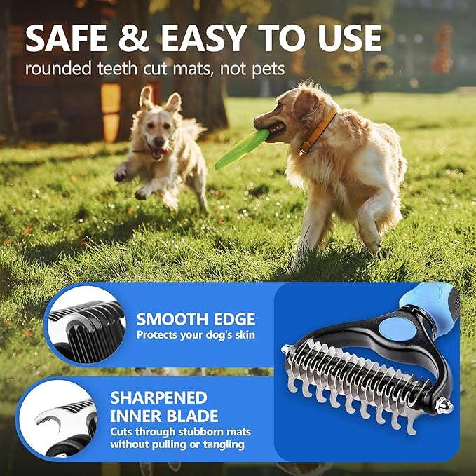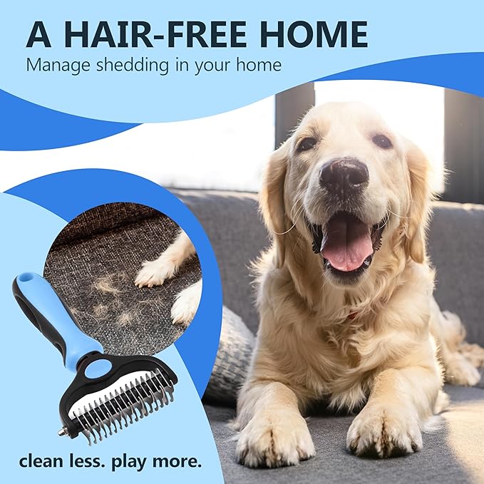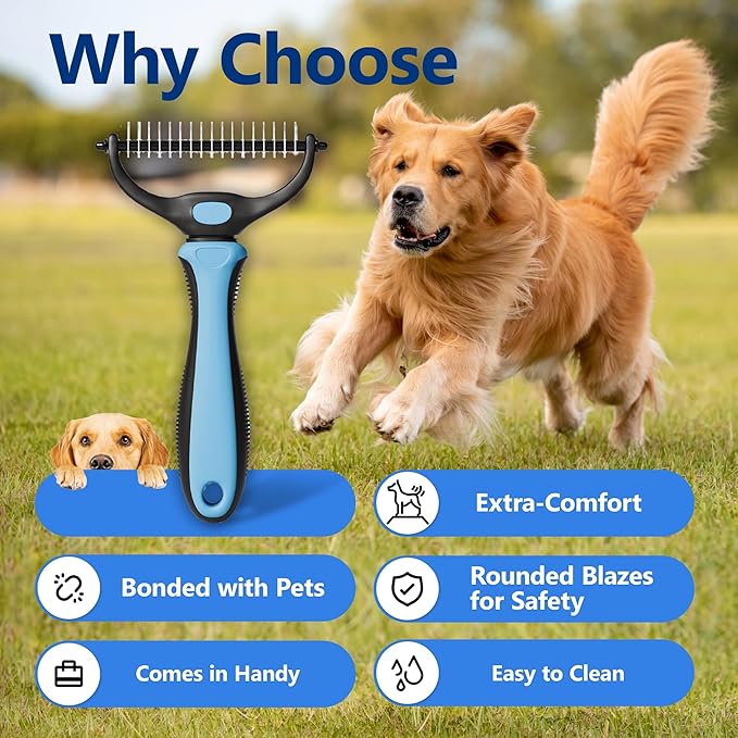 Pet Grooming Comb - Double-Sided Deshedding Tool, Undercoat Rake for Dogs, Dematting Comb for Cats, Extra Wide Brush for Long Haired Dogs & Cats (BLUE)