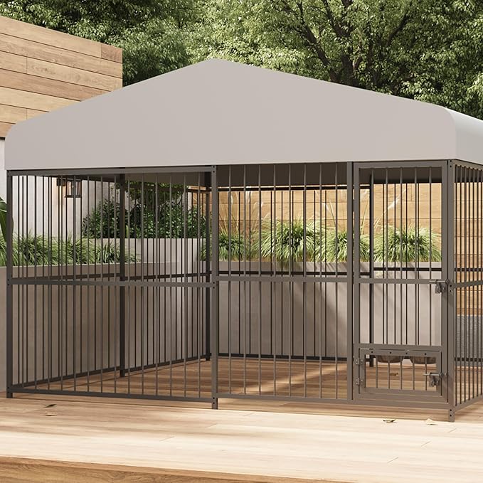 - [WATERPROOF CANOPY FOR YEAR-ROUND PROTECTION] Enhance your pet's outdoor experience with our dog enclosures, which comes equipped with a waterproof canopy. This feature your furry friends from rain and harmful UV rays, allowing them to enjoy fresh air without exposure to the elements. The protective canopy ensures that your pets remain comfortable and safe