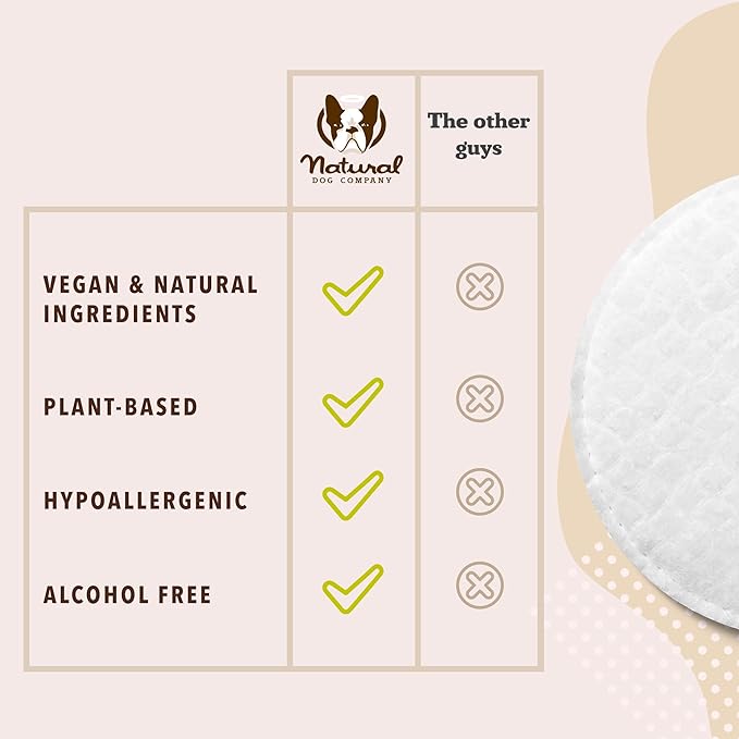 Natural Dog Company Wrinkle Wipes for Dogs, 100 Count, Hypoallergenic Dog Wipes, Wrinkle Wipes French Bulldog, Cleaning & Deodorizing, Dog Wipes for Grooming Faces, Paws & Butts