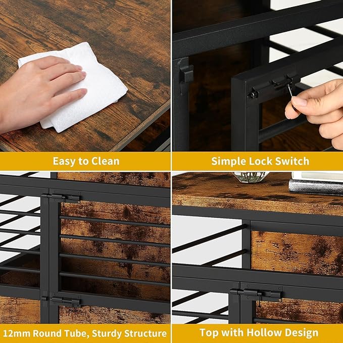 - Simple Setup & Cleaning: Assembling this dog crate furniture is a breeze with pre-labeled parts, included accessories, and clear instructions. Even first-timers can put it together easily! The wooden top and metal frame are a cinch to clean, saving you from tedious chores