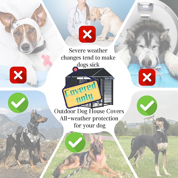 - PERFECT FIT DOG HOUSE COVER: Ideal for pet kennels, don't expose your pets to sun, wind, and rain for long periods of time as they can easily get sick. Our full-cover kennel covers provide full protection for your pet and kennel from weather conditions.