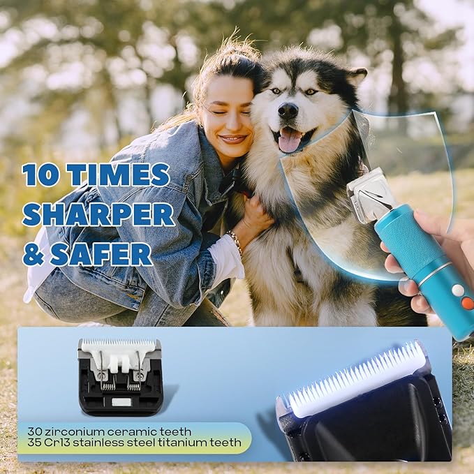 - REMOVABLE TITANIUM CERAMIC BLADE - The blade of LuzRise dog grooming shears are made of 35 Cr13 stainless steel titanium teeth and 30 zirconium ceramic teeth for smooth and efficient trimming. Made of high-tech nanotechnology, the blades are more than 13 times sharper than normal steel blades, so whether your pet has a thick, a curly wavy or a long coat, it will trim with ease. And with two guide combs (3mm, 6mm, 9mm, 12mm), you can quickly and easily create a variety of hairstyles for your pet