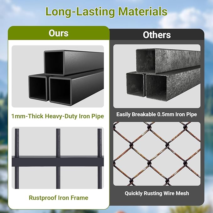 - Sturdy and Durable: This dog enclosure outdoor uses a durable anti-rust coating, which can effectively prevent bending, rusting, corrosion or fading after long-term use. Its sturdy fence structure can resist the dog's chewing and scratching, ensuring that the cage remains stable and durable for a long time.