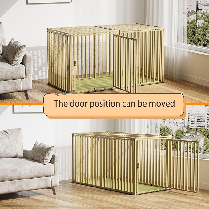 - Secure Top Cover & Flexible Door Placement: The Dog Crate boasts a secure top cover that effectively prevents your pet from escaping. The sturdy design of the cover ensures that even the most determined escape artists are kept safely contained within the crate. Additionally, the crate offers the flexibility to install the door at any desired position, allowing you to customize the access point based on your home's layout or your pet's specific needs.